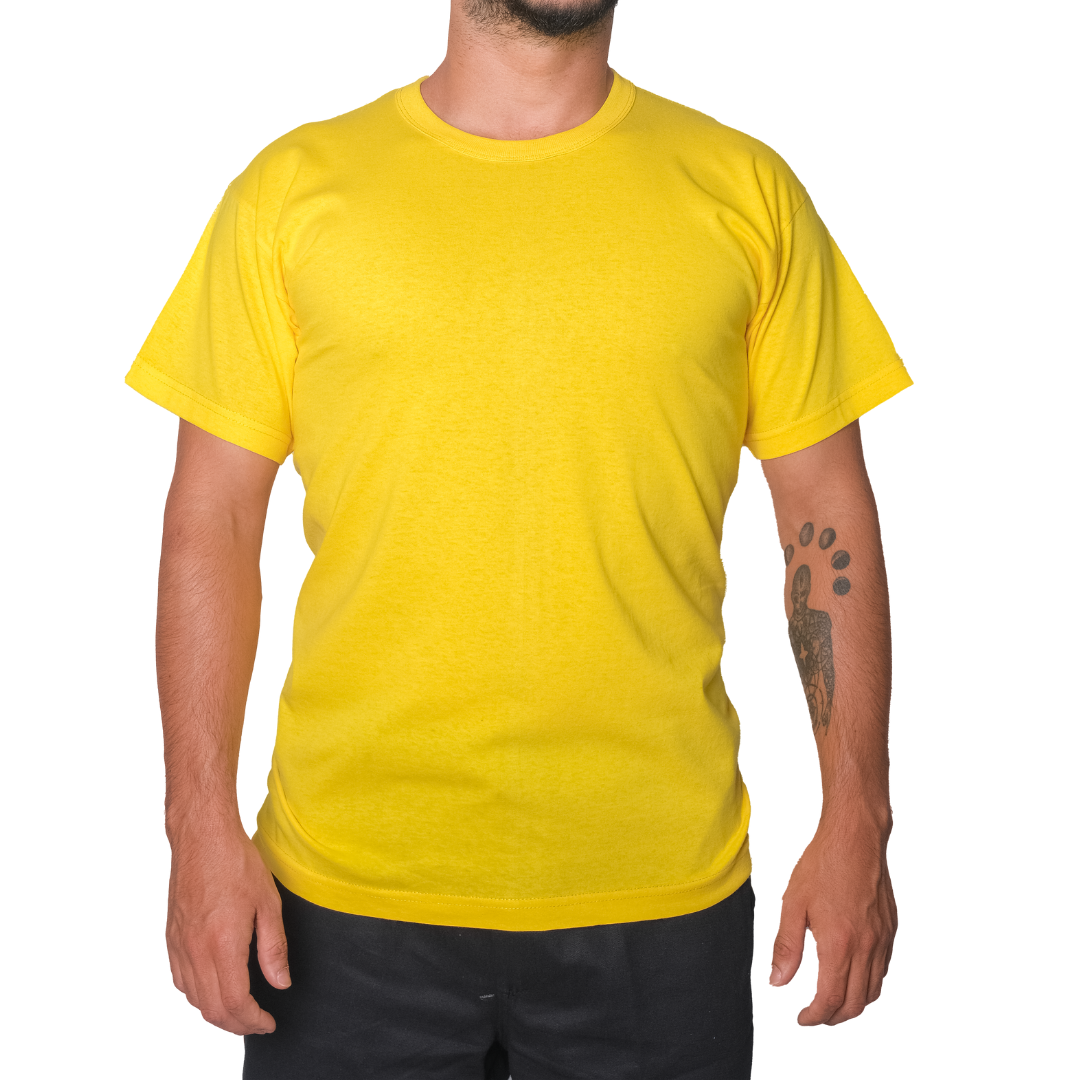 Baskılı Sıfır Yaka Company Tişört Sarı - TOPTAN (10 Adet)